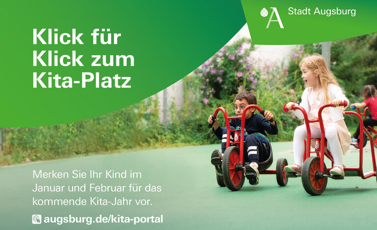 unser digitales Ganztags- und Kita-Portal ist die zentrale Anlaufstelle mit allen Informationen zu einem Betreuungsplatz für Ihr Kind in Augsburg. Sie können damit Ihr Kind in einer Kita (Krippe, Kindergarten oder Hort), in einer Kindertagespflegestelle oder für die Ganztagsbetreuung vormerken lassen.