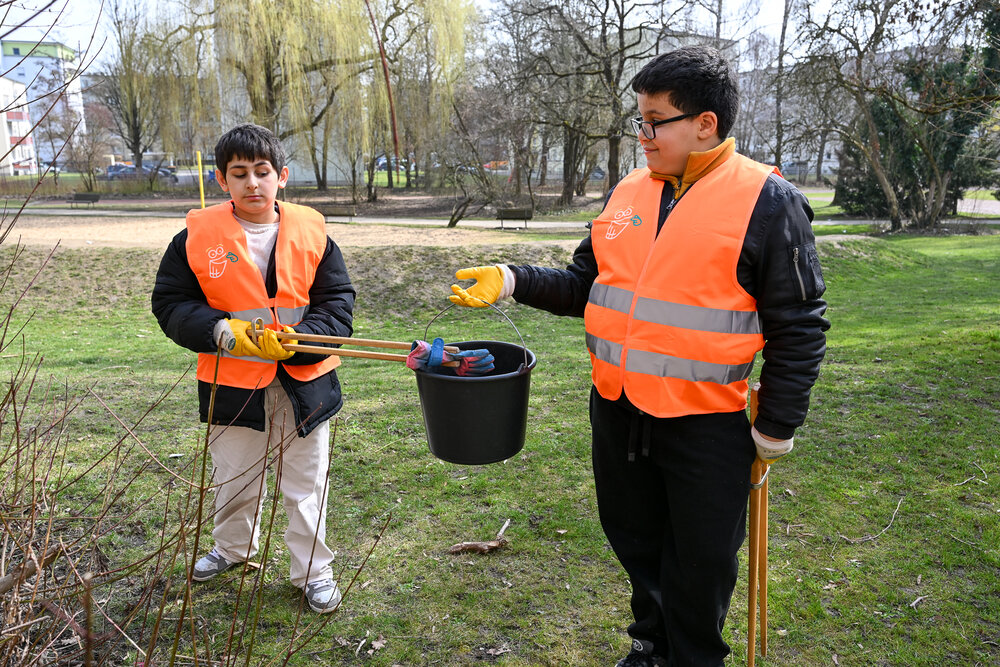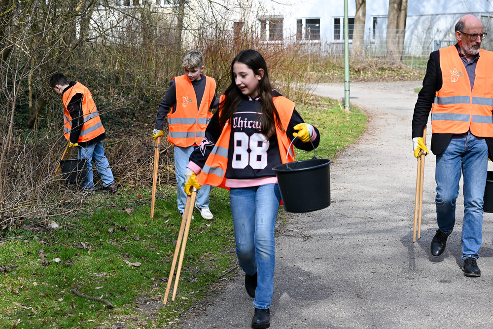 Der Frühlingsputz des Abfallwirtschafts- und Stadtreinigungsbetriebes der Stadt Augsburg (AWS) ist für alle zum Mitmachen und läuft noch bis 17. April 2026. Bei der Auftaktveranstaltung von „Augsburg – Sauber ist in!“ am Montag, 9. März, machten Schülerinnen und Schüler an der Kerschensteiner Grund- und Mittelschule schon mal vor, wie es geht: Sie sammelten rund um ihre Schule die achtlos weggeworfenen Abfälle ein und setzten damit ein Zeichen gegen Littering im öffentlichen Raum.