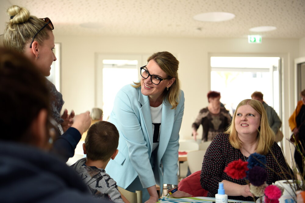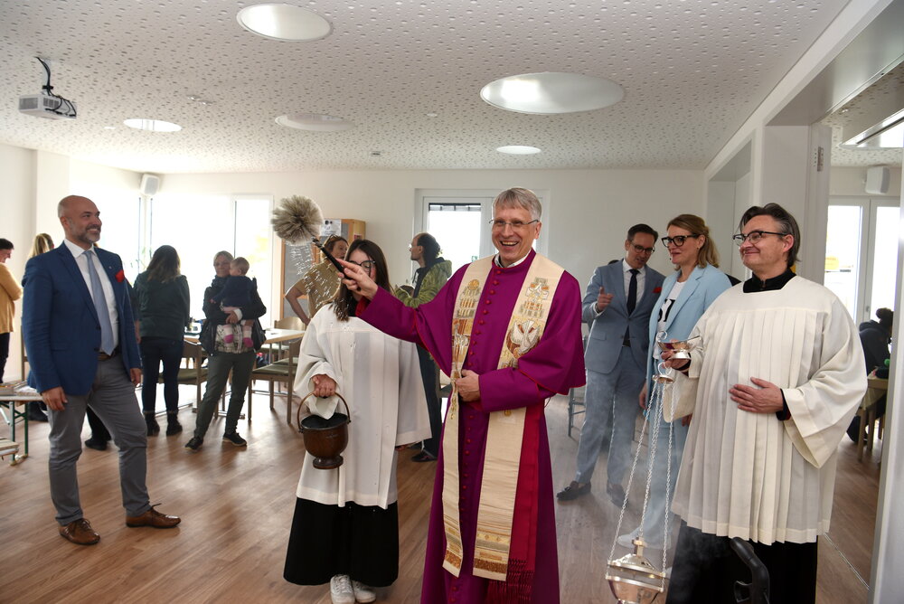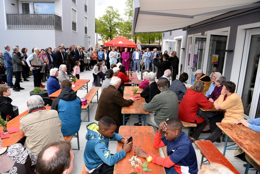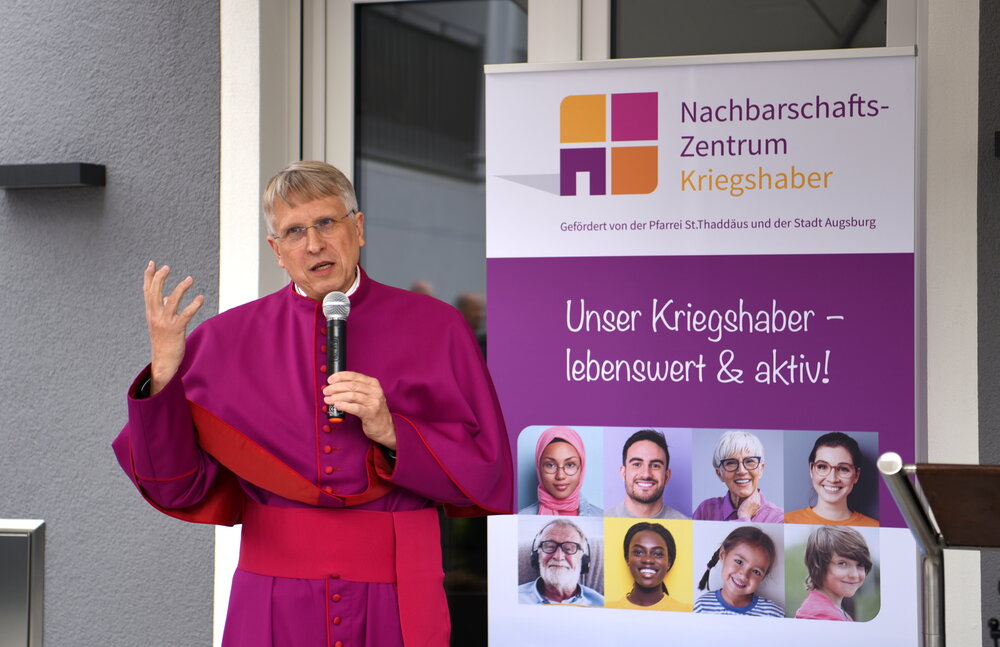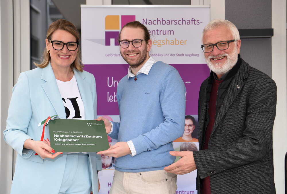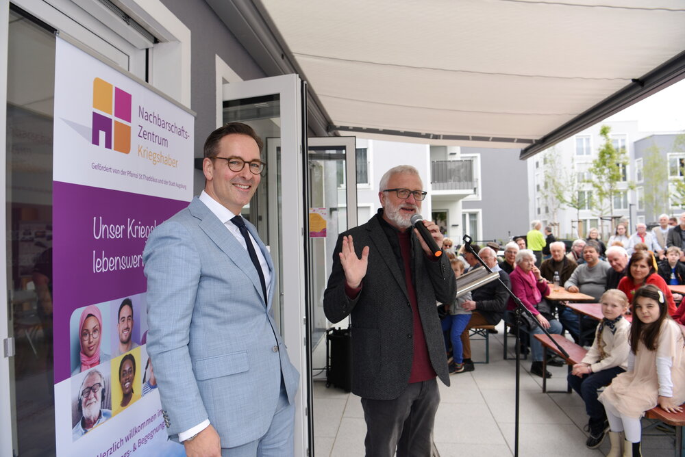 „Mit dem neuen, modernen Nachbarschafts-Zentrum haben wir gemeinsam einen ansprechenden Dreh- und Angelpunkt für die Bürgerinnen und Bürger in Kriegshaber geschaffen“, sagte Oberbürgermeisterin Eva Weber. Der Stadt Augsburg liege die Zusammenarbeit mit allen Stadtteilvereinen, Initiativen und vor allem mit der örtlichen Pfarrgemeinde als Trägerin der Einrichtung sehr am Herzen. „Für Kriegshaber als schnell wachsenden Stadtteil war es elementar wichtig, eine solche Anlaufstelle zu ermöglichen. Ich wünsche dem Nachbarschafts-Zentrum einen guten Start und allen Kriegshaberinnen und Kriegshabern viel Freude bei den Begegnungen dort“, so Weber.