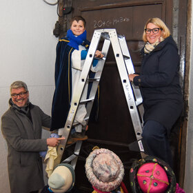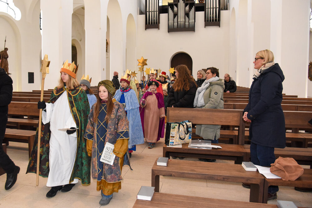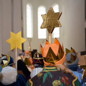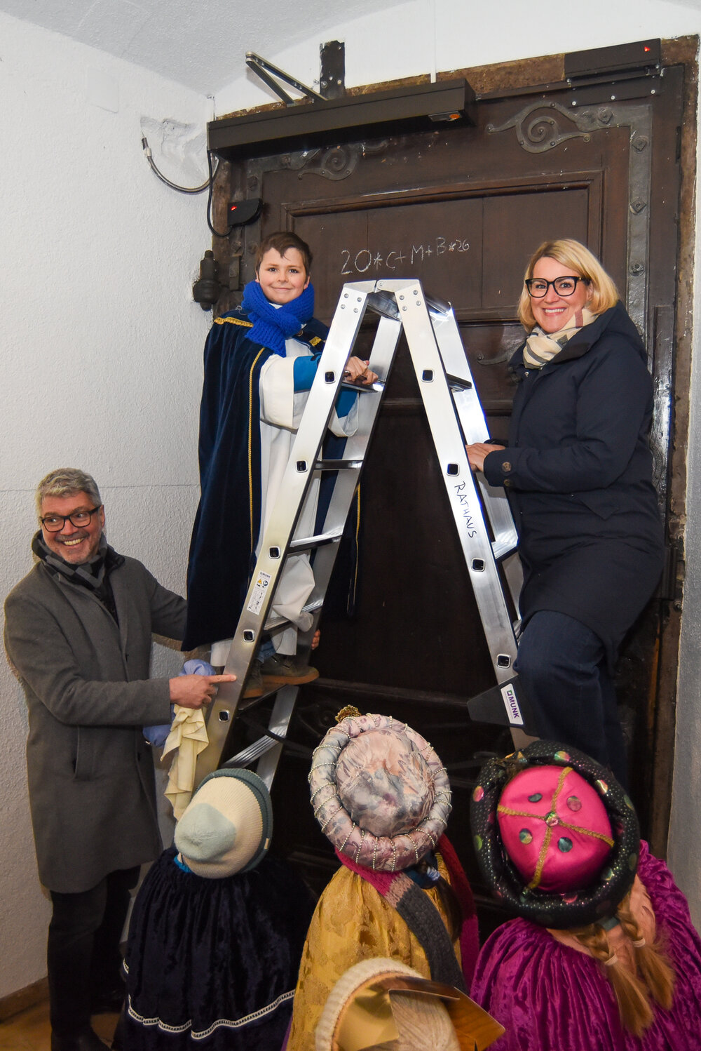 Dort segnete Haug das Dreikönigswasser. Mit diesem zogen die Kinder zum Rathaus, um es zu segnen und den Segensspruch anzuschreiben. Anschließend entsendete die Oberbürgermeisterin die Kinder in die Stadt. In diesem Jahr steht die Spendenaktion unter dem Motto: „Schule statt Fabrik – Sternsingen gegen Kinderarbeit“. (lf)