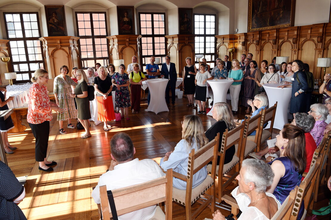 Rund 100 Stadtführerinnen und Stadtführer zeigen Gästen aus aller Welt das ganze Jahr über die schönsten Ecken Augsburgs. Bei einem Empfang am Montag im Fürstenzimmer des Rathauses sagte Oberbürgermeisterin Eva Weber „Danke!“ zu den „Botschafterinnen und Botschaftern unserer Stadt“.