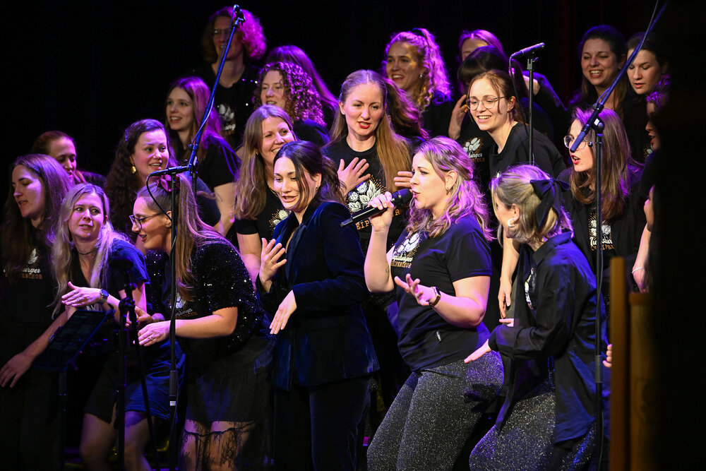 Beim Frauenempfang im Kurhaus Göggingen sorgte der Kneipenchor für gute Laune. Foto: Ruth Plössel/Stadt Augsburg