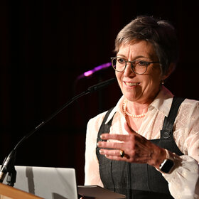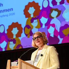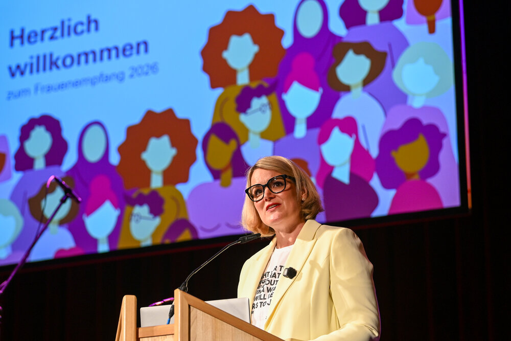 OB Eva Weber heißt die Augsburgerinnen beim Frauenempfang willkommen. Foto: Ruth Plössel/Stadt Augsburg