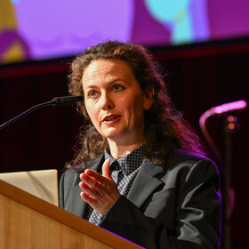Janina Kugel, Senior Advisor bei der Boston Consulting Group, hält die Festrede beim Frauenempfang. Foto: Ruth Plössel/Stadt Augsburg