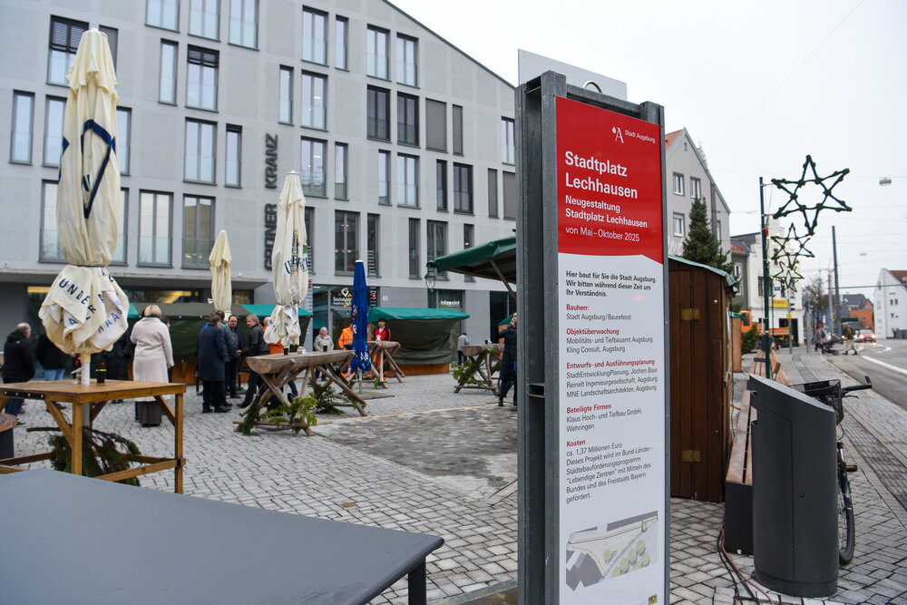 Ein halbes Jahr wurde gebaut. Jetzt ist der Stadtplatz im Herzen Lechhausens fertig. Am gestrigen Donnerstag wurde er von Oberbürgermeisterin Eva Weber und Baureferent Steffen Kercher eingeweiht – und gleichzeitig der Lechhauser Weihnachtsmarkt eröffnet.