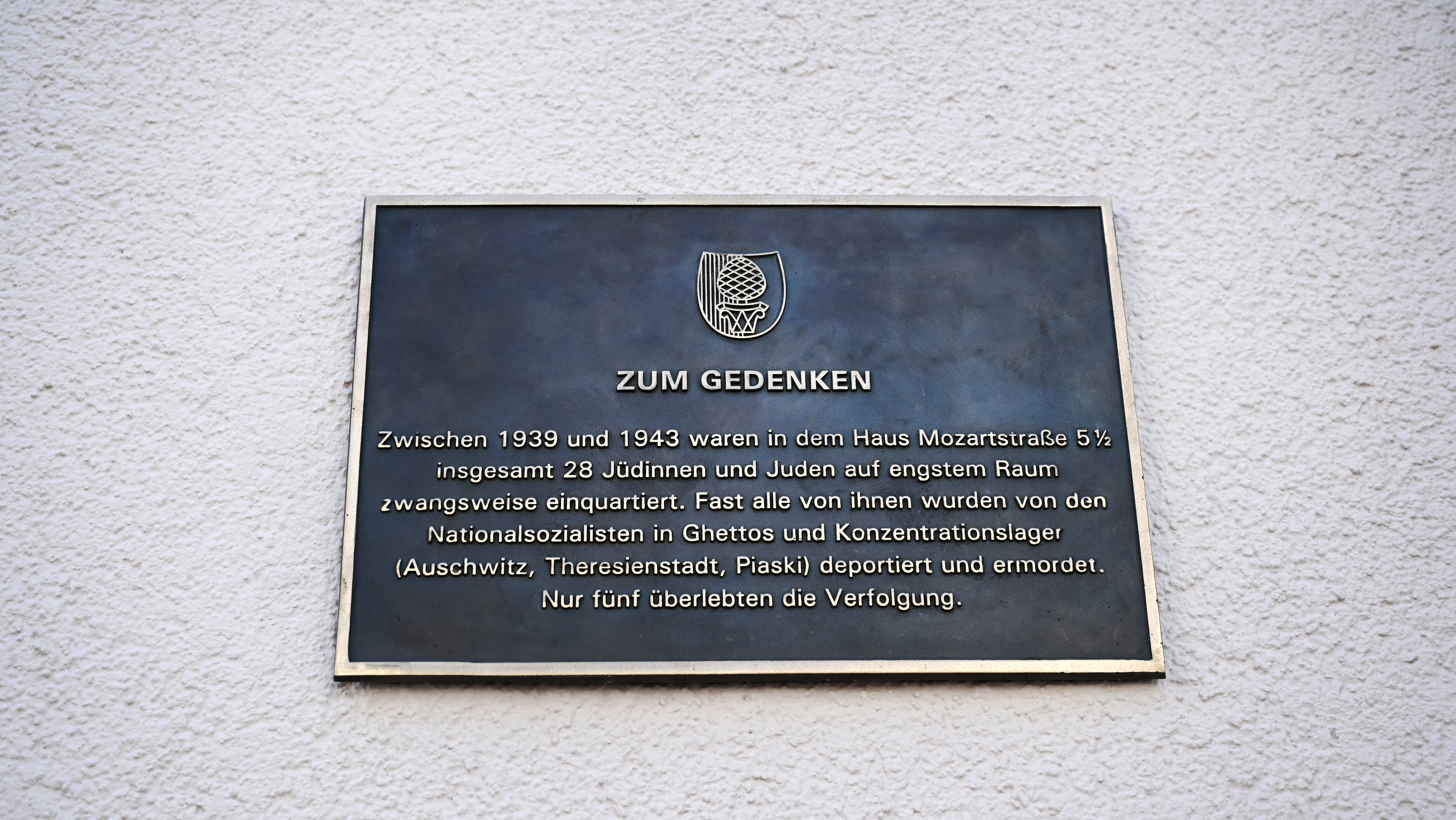 Im Haus Mozartstraße 5 ½ waren zwischen 1939 und 1943 insgesamt 28 Jüdinnen und Juden zwangsweise einquartiert. Am heutigen Mittwoch wurde an der Fassade eine Tafel enthüllt. Sie erinnert an das Schicksal der Betroffenen.