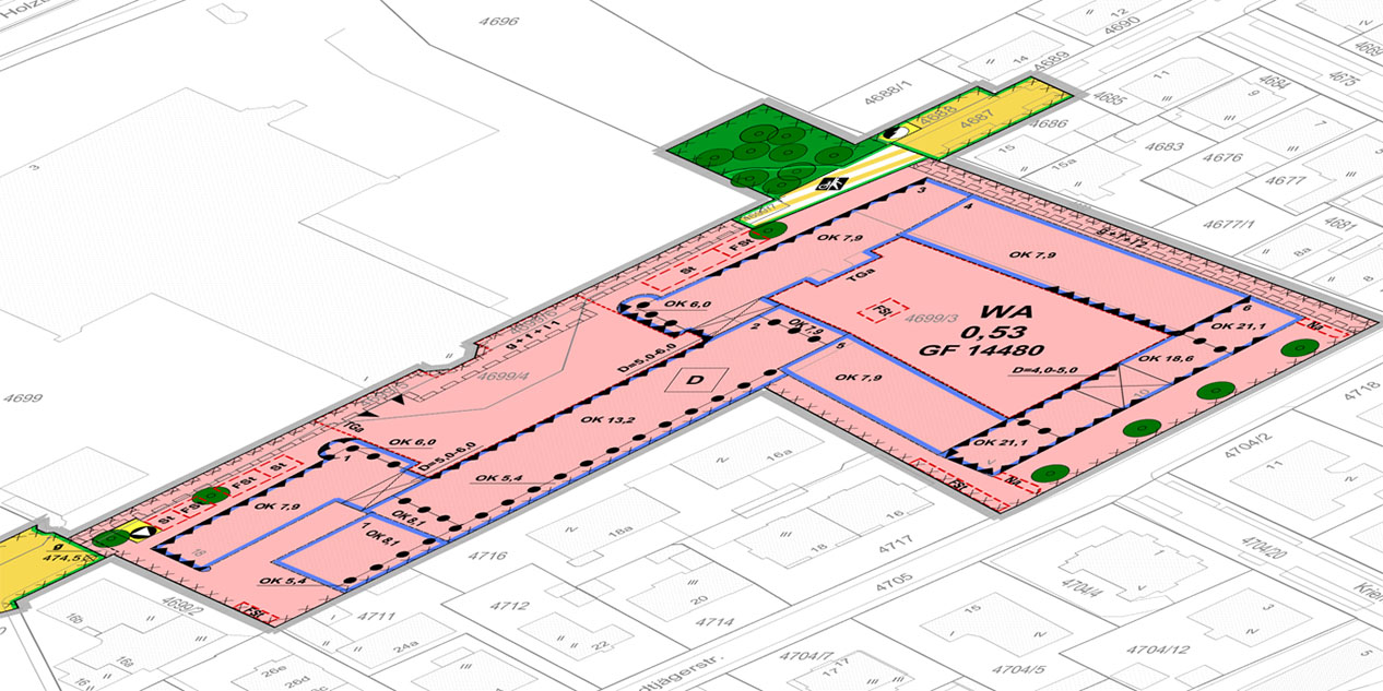 Auszug Entwurf Bebauungsplan Nr. 482 I; Grafik: Stadtplanungsamt Augsburg