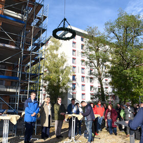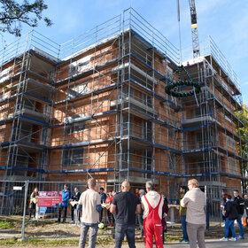 Beim Richtfest mit Oberbürgermeisterin Eva Weber, Finanzreferent Roland Barth und dem Leiter des Stiftungsamtes Marco Surauer entstanden diese Bilder.