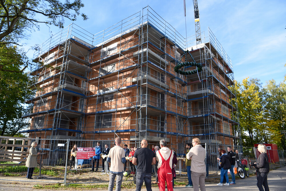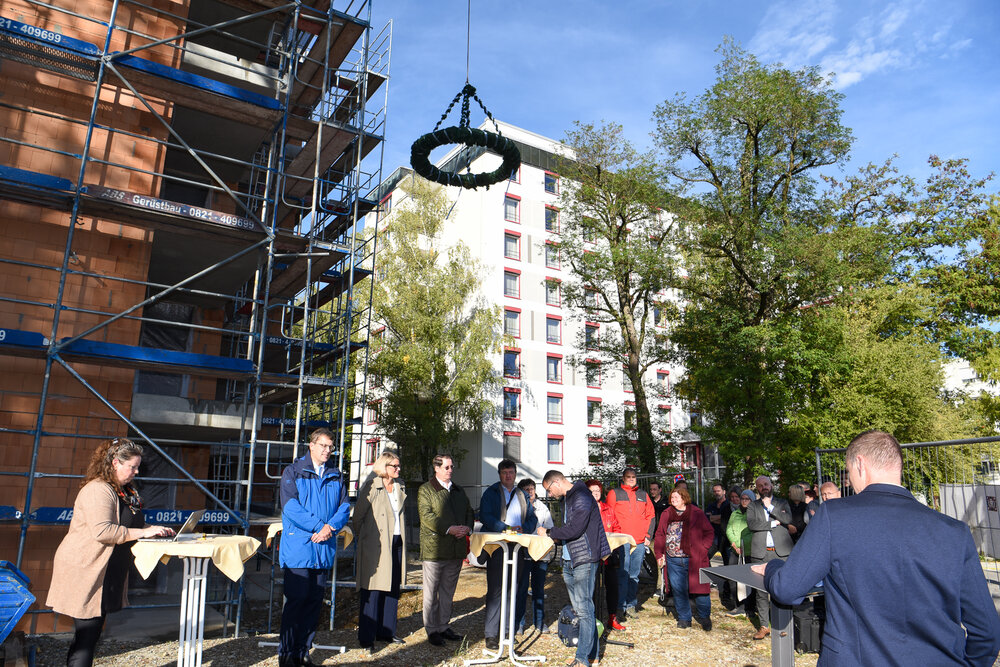 Nach dem Richtspruch durch Bauleiter Christian Sulzer hatten Kooperationspartner, Stadtratsmitglieder sowie Vertreterinnen und Vertreter der Medien die Möglichkeit, sich vor Ort über das Projekt und die Rolle des Stiftungsamtes auf dem Augsburger Wohnungsmarkt zu informieren. (pe/swo)