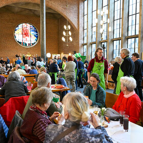 Am Sonntag, 1. März, wurde die Vesperkirche in St. Paul in Pfersee eröffnet. Zwei Wochen lang können Menschen aus der Region dort täglich für einen Euro Mittag essen.