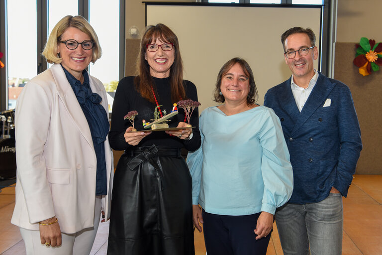 Bereits 2023 war ein Großteil der Arbeiten geschafft, nun sind auch die Räume für den Ganztag bezugsfertig. Die Fertigstellung der ansprechenden Räumlichkeiten wurde am vergangenen Freitag, den 24.10.2025 von Oberbürgermeisterin Eva Weber, Bildungsbürgermeisterin Martina Wild und der Schulleiterin Birgit Löffler Moody im Beisein der Schulfamilie gefeiert.