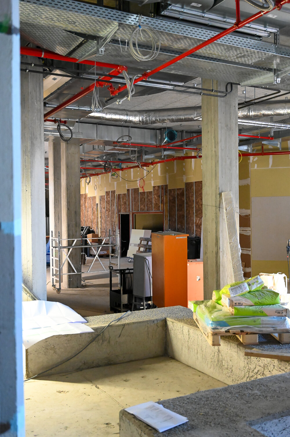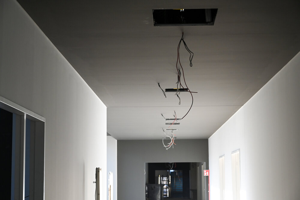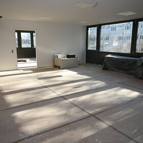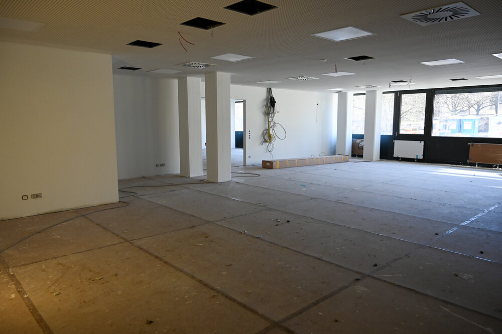 Die Wegeführung in den Verwaltungsbereichen wurde optimiert, was sich in günstigeren Raumzuschnitten und insgesamt mehr Nutzfläche in den Räumen niederschlug. Der Umfang der zukünftigen Mensa wurde auf eine Frischküche ausgelegt und genügt damit auch höchsten Ansprüchen an frisch vor Ort zubereitete Speisen. Während sich die Mensa im Konzept noch sehr stark am Bestand als Erfahrungsgröße orientierte und dadurch aus zwei durch einen Flur getrennten Bereichen bestand, wurde hieraus ein zusammenhängendes Nutzungskonzept entwickelt. Die Flurzone wurde aus diesem Bereich verlegt, um Kreuzungsverkehr zu vermeiden, was zu leichter beherrschbaren hygienischen Anforderungen als auch zu mehr Ruhe bei der Speiseneinnahme führt.
