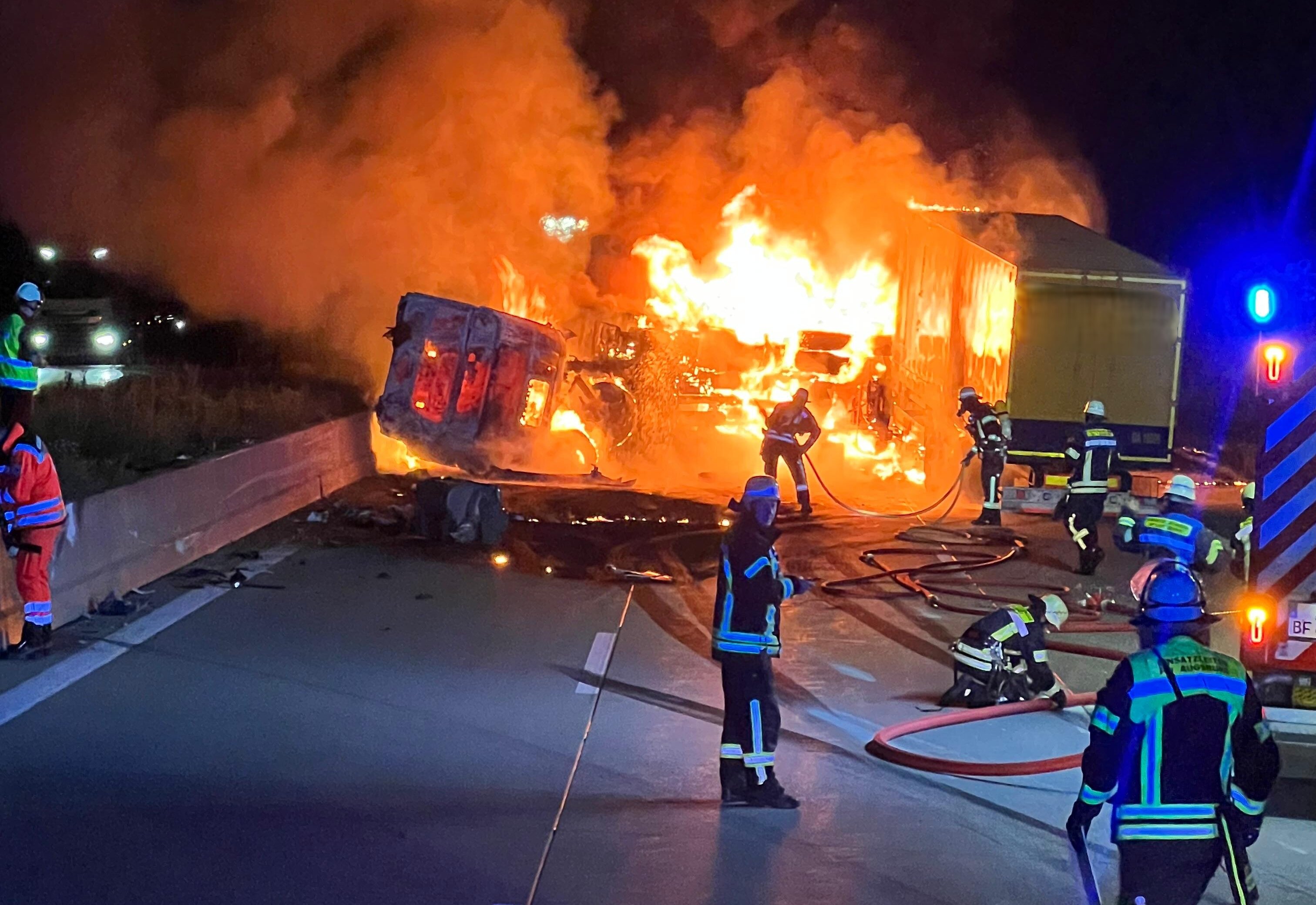 Tödlicher Unfall auf der A8: Gefahrgut-LKW brennt aus