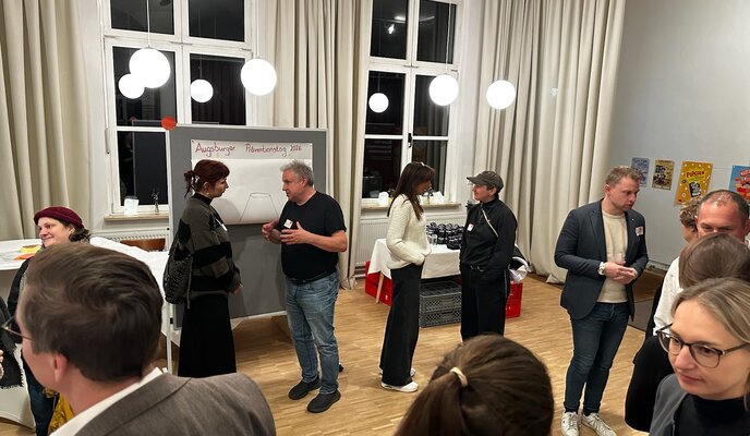 Ein besonderes Element bildeten die lebendigen Mini-Workshops, in denen die Teilnehmenden erste Ideen und Impulse für den Augsburger Präventionstag 2026 entwickelten. Die Gesprächsrunden boten Raum für Austausch, neue Kontakte und frische Perspektiven.