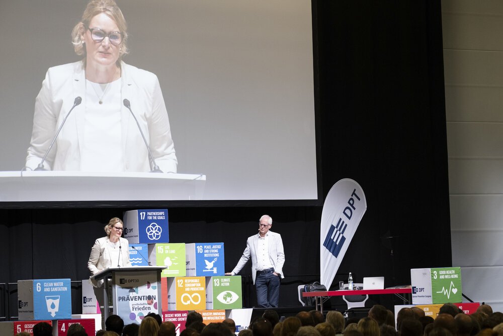 Ein weiterer Höhepunkt war die Abendveranstaltung für alle Kongressteilnehmenden im Kongress am Park, mit rund 1.500 Gästen. Sie bot den feierlichen Rahmen, um zu Netzwerken und die Bedeutung der Präventionsarbeit zu würdigen und das Engagement zahlreicher Akteurinnen und Akteure hervorzuheben.