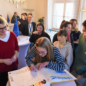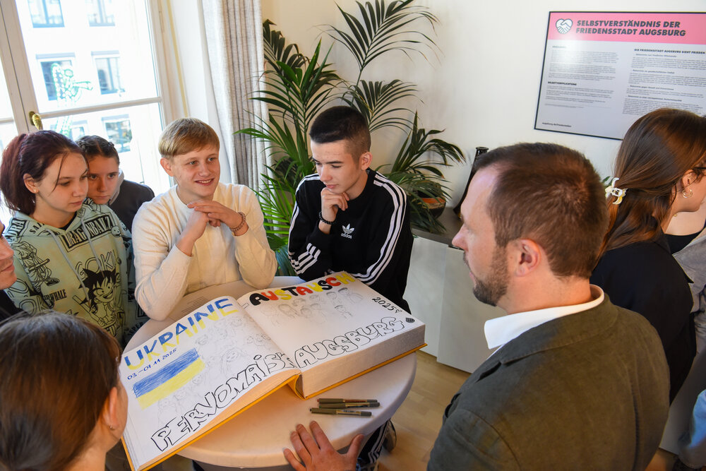 Vom 2. bis 9. November sind zehn Jugendliche aus der ukrainischen Projektpartnerstadt Perwomajsk zu Gast in Augsburg. Begleitet werden sie von zehn jungen Augsburgern und Augsburgerinnen. Am Dienstag, 4. November, wurden sie von Oberbürgermeisterin Eva Weber empfangen.