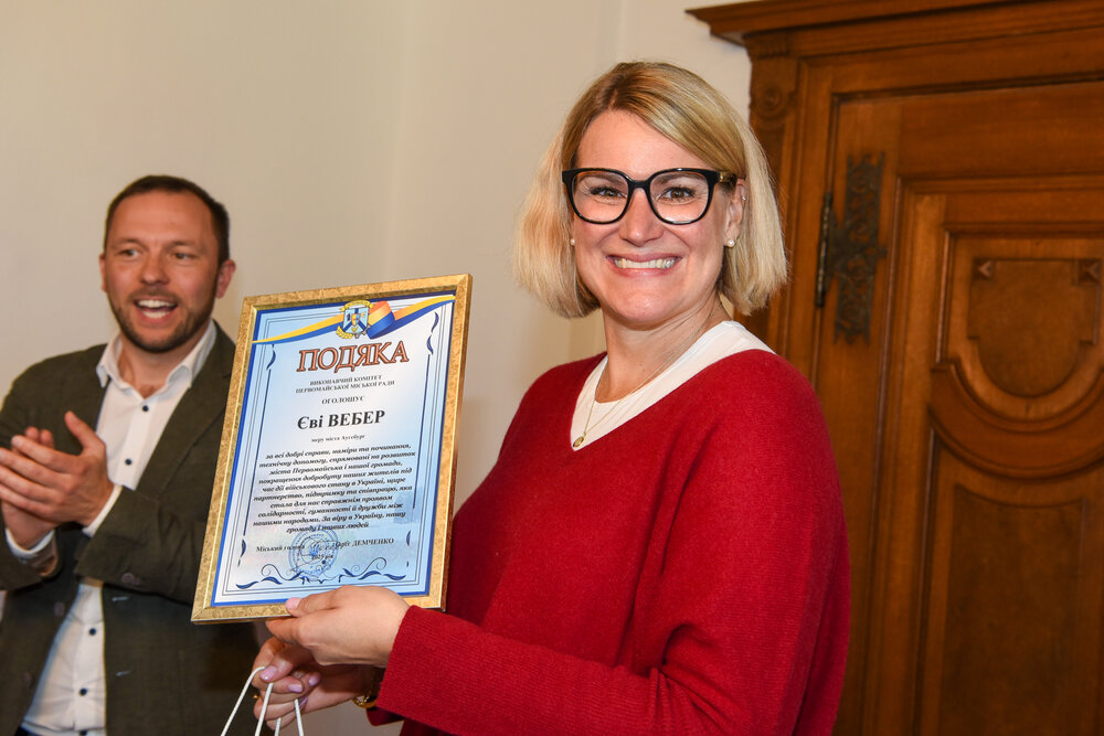 Oberbürgermeisterin Eva Weber und Bürgermeister Oleh Demchenko haben eine Projektpartnerschaftsvereinbarung unterzeichnet. „Dies ist ein konkreter Beitrag der Stadt Augsburg für Freundschaft und Zusammenarbeit zwischen den Ländern und Menschen, in der Hoffnung, dass der völkerrechtwidrige Angriffskrieg auf die Ukraine bald ein Ende hat“, so Weber bei der Unterzeichnung in Augsburg. Die Projektpartnerschaft besiegelte Oleh Demchenko durch seine Unterzeichnung der Vereinbarung im Rahmen der deutsch-ukrainischen Partnerschaftskonferenz in Leipzig. Die Projektpartnerschaftsvereinbarung können Sie hier einsehen.