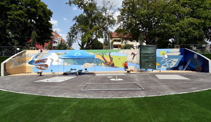 Im August 2019 wurde ein neuer Spielplatz mit Wasserspiel-Elementen, einer Sandfläche und einer mit Graffiti gestalteten Kletterwand eröffnet, der zur Belebung der Grünanlage beiträgt.