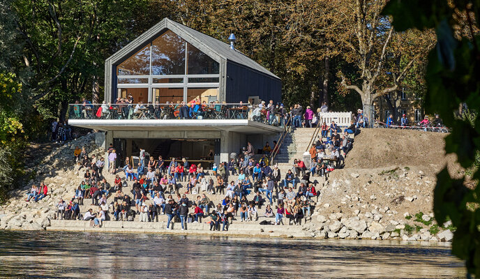 Zur neuen Attraktivität des Flößerparks trägt auch die Ausflugsgaststätte „Floßlände“ bei, die in den Jahren 2020 und 2021 in Verlängerung der Yorckstraße am Flussufer errichtet wurde.
