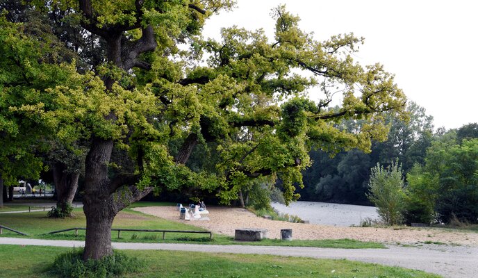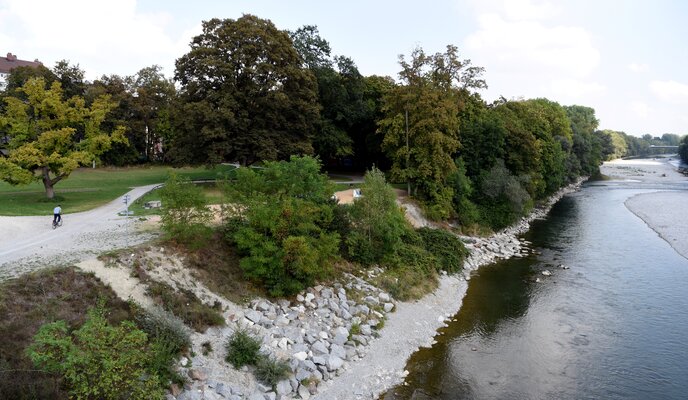 Dafür werden acht Bäume gefällt, die zum Teil aufgrund von Schäden im Rahmen der Verkehrssicherungspflicht ohnehin entfernt werden müssen. Sie werden mitsamt ihrer Wurzel entnommen und dienen dann als sogenannte „Raubäume“ im Lech zur Belebung des Gewässers. Im weiteren Verlauf des Neubaus der Grünanlage entstehen neue Baumstandorte.