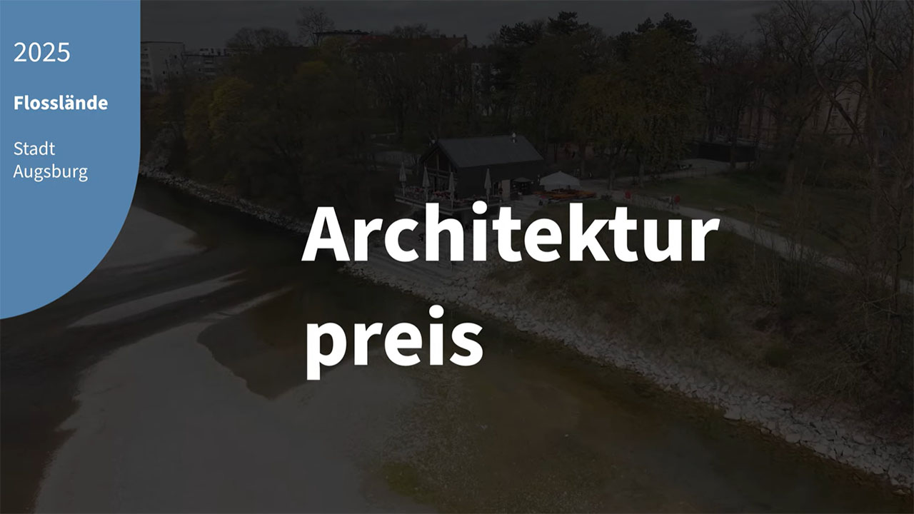 Die Architektur der Ausflugsgaststätte erinnert an die historische Anlegestelle für Flöße an der Lechbrücke und die Flößerei, die in der Vergangenheit in Lechhausen eine große Rolle spielte. Die „Floßlände“ wurde mit dem Architekturpreis 2025 des Bezirks Schwaben ausgezeichnet.