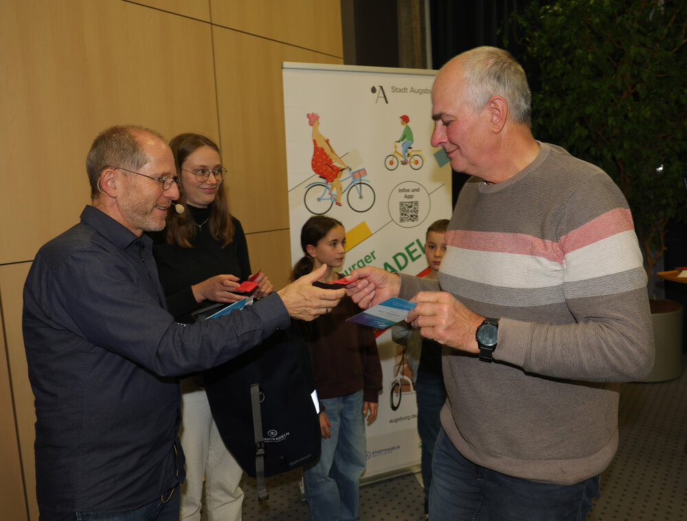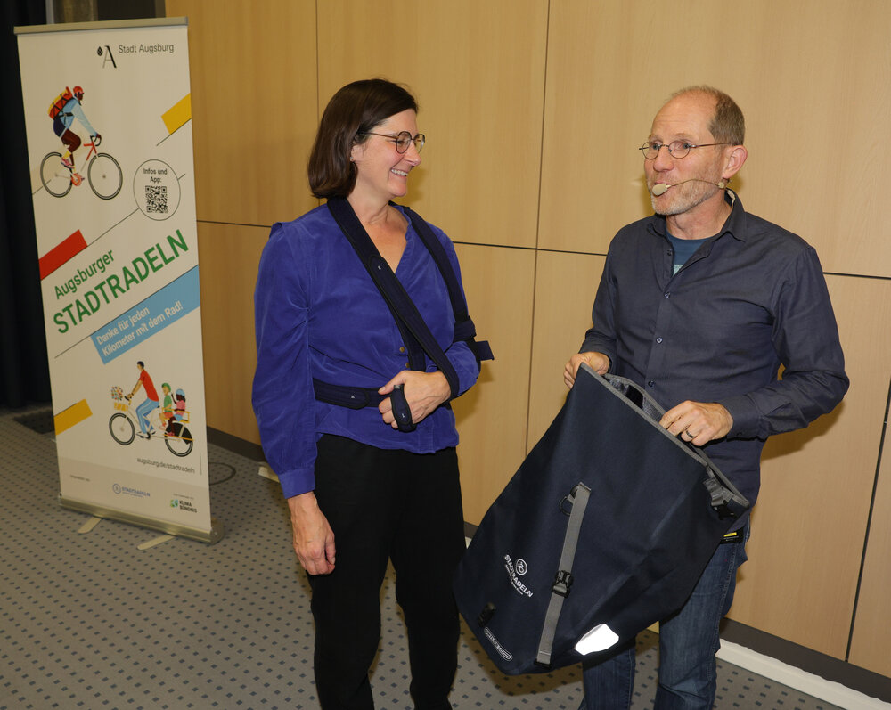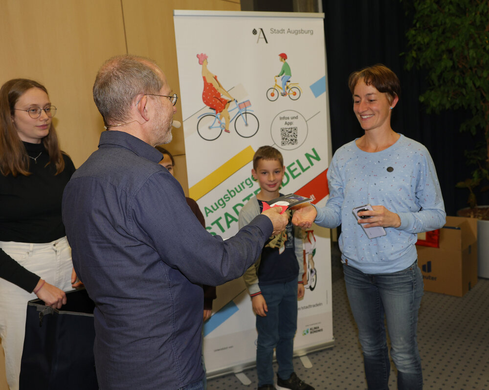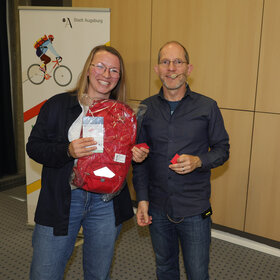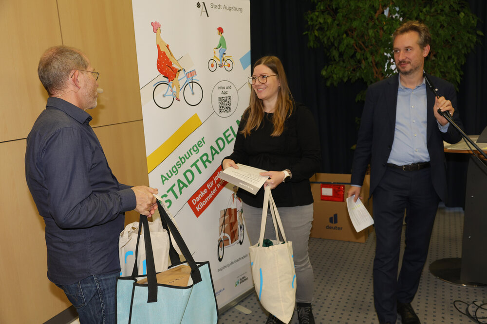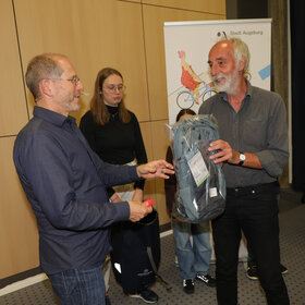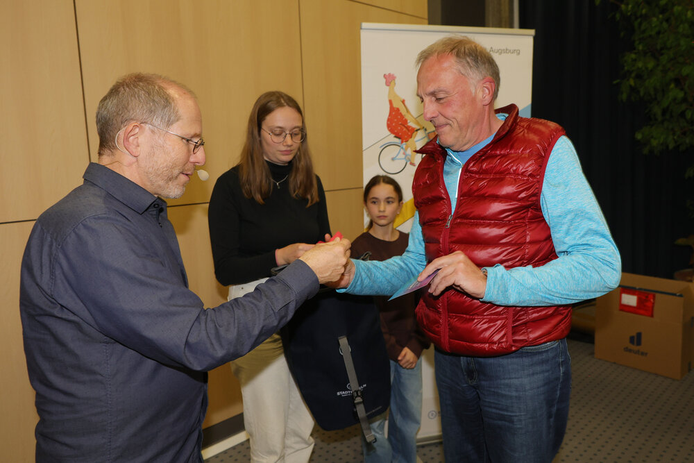 Zur Abschlussveranstaltung am Donnerstag, 16. Oktober, im Vortragssaal der Stadtwerke Augsburg waren alle STADTRADLERINNEN und STADTRADLER eingeladen. Dabei wurden die Preisträgerinnen und Preisträger in sieben Kategorien von Baureferent Steffen Kercher ausgezeichnet.