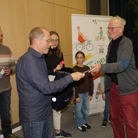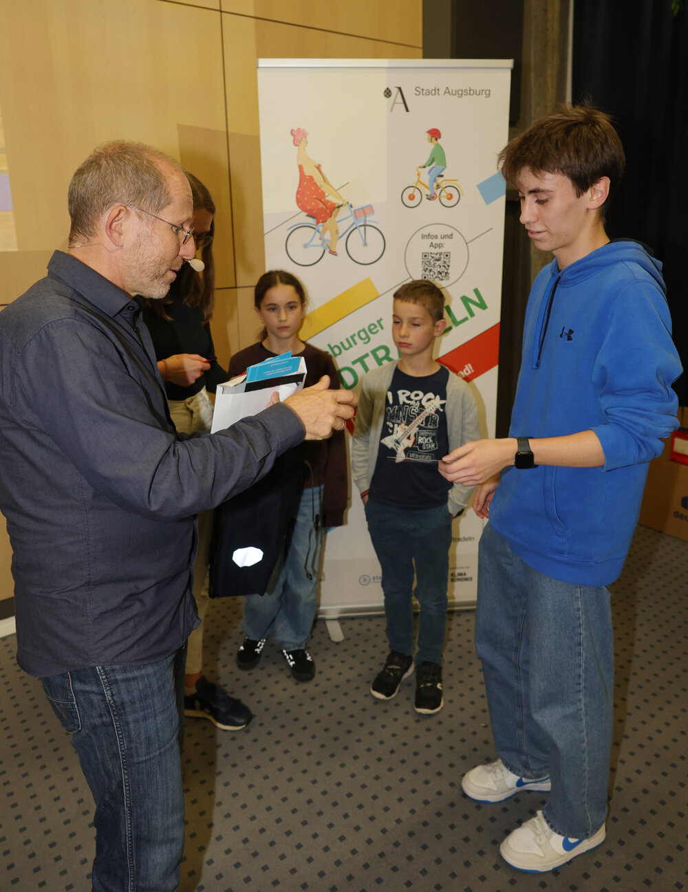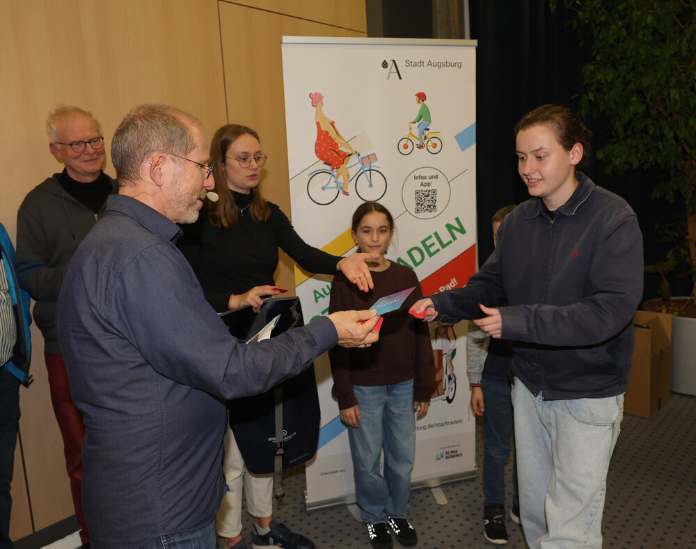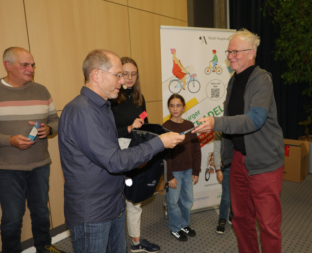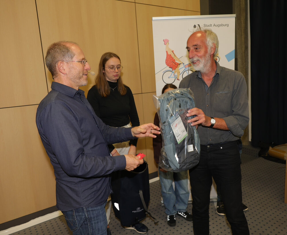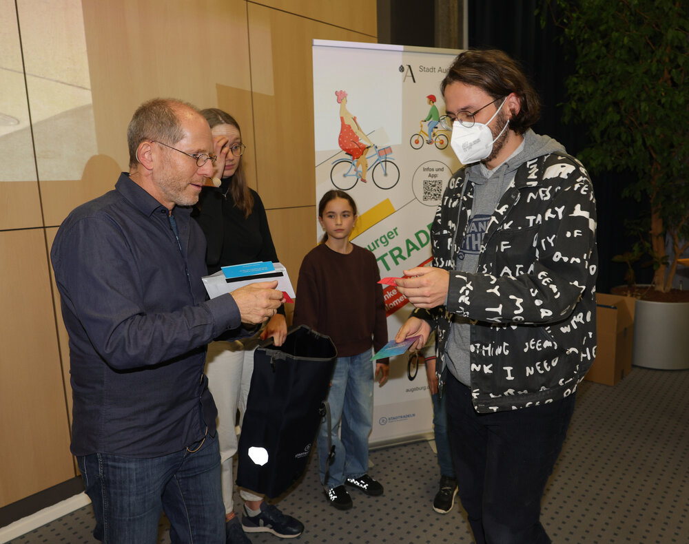 Zur Abschlussveranstaltung am Donnerstag, 16. Oktober, im Vortragssaal der Stadtwerke Augsburg waren alle STADTRADLERINNEN und STADTRADLER eingeladen. Dabei wurden die Preisträgerinnen und Preisträger in sieben Kategorien von Baureferent Steffen Kercher ausgezeichnet.
