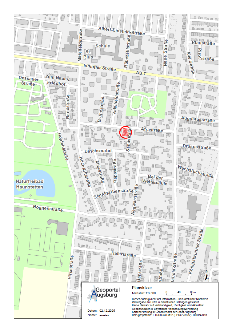 Die Stadt Augsburg ist Eigentümerin des Grundstücks Fl.Nr. 1139 Gemarkung Haunstetten (Afrastraße 10 / 12, 86179 Augsburg). Das Grundstück hat eine Größe von 395 m², ist aktuell mit einem Doppelhaus / Zweifamilienhaus bebaut und soll gegen Höchstgebot veräußert werden.