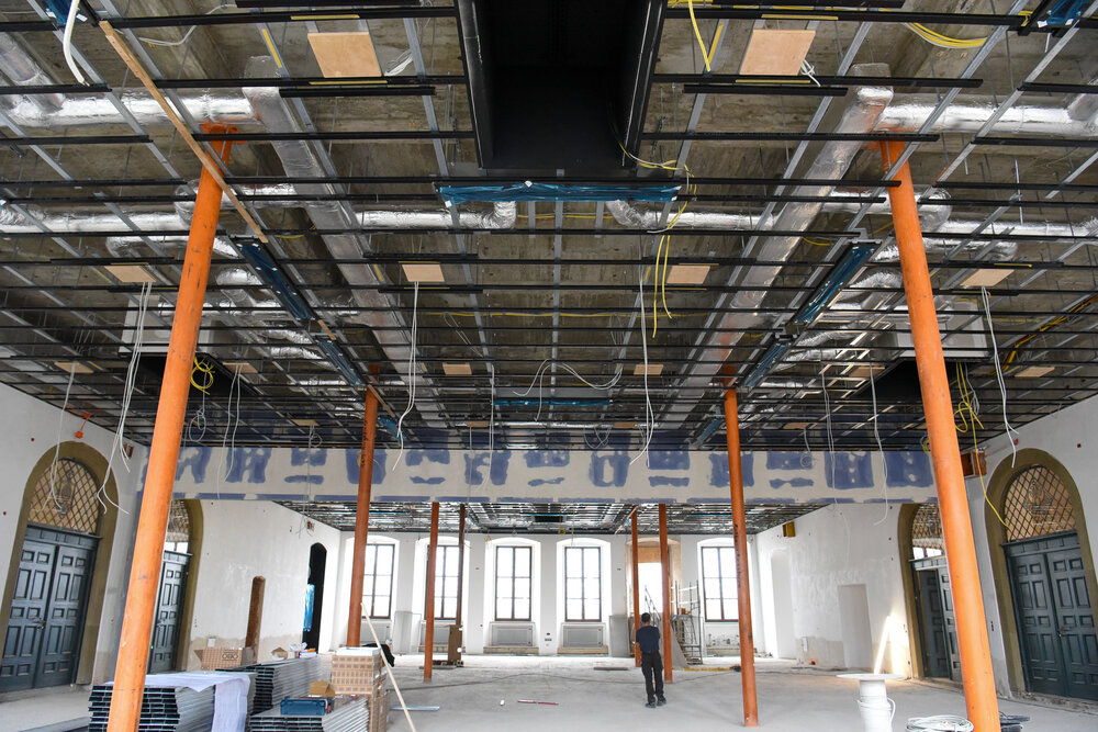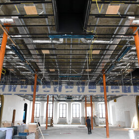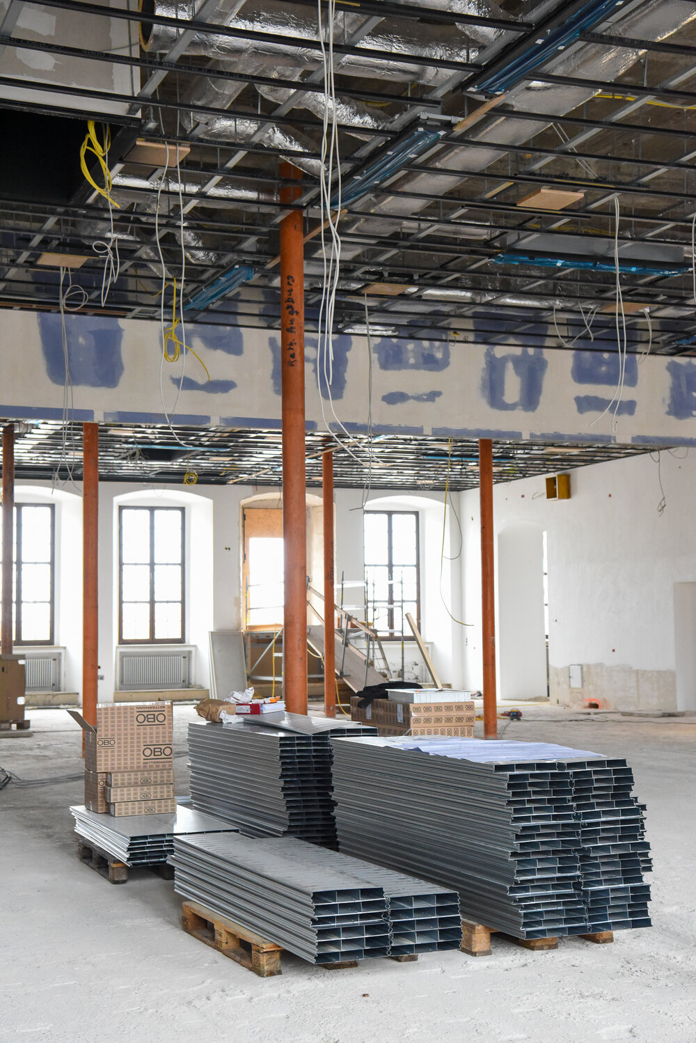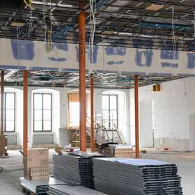 Aktuell werden die Lüftungskanäle, die Lüftungsanlage sowie die Deckenabhängung im Oberen Fletz installiert.