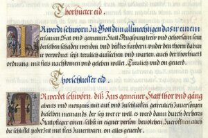 Im Jahr 1505 erscheint ein Bürger namens Hans Saurengrein erstmals im Bezirk „Eng Kirchgass“ in den Augsburger Steuerbüchern - und zahlte gar nichts! Vermutlich hatte er erst im vergangenen Jahr geheiratet. Denn im ersten Ehejahr wurde jungvermählten Paaren die übliche Steuer meist erlassen, um den Aufbau des eigenen Hausstandes zu erleichtern. Auch in den Stadtrechnungen wurde Saurengrein zu dieser Zeit aktenkundig. Gegen Entrichtung einer Gebühr von vier Gulden erstand er im August 1505 das Augsburger Bürgerrecht. Zwei zentrale Informationen liefert der knappe Zweizeiler im schwergewichtigen Rechnungsbuch des städtischen Baumeisteramtes: Saurengrein war aus Utting am Ammersee in die Reichsstadt gekommen und ging hier dem Weberhandwerk nach.