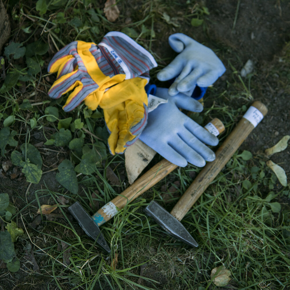 Hüttenbau: Aus Holz bauen wir gemeinsam Hütten und gestalten diese farbenfroh.